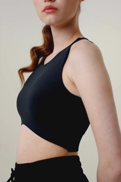 Designed to make a statement both on and off the court, this Cheer bra  features a sleek, high-neck silhouette with a unique front curve for a modern, sporty look. The racerback design offers freedom of movement and added support, while the soft, stretchy fabric ensures comfort through every motion. Perfect for training, tennis, or casual activewear styling.